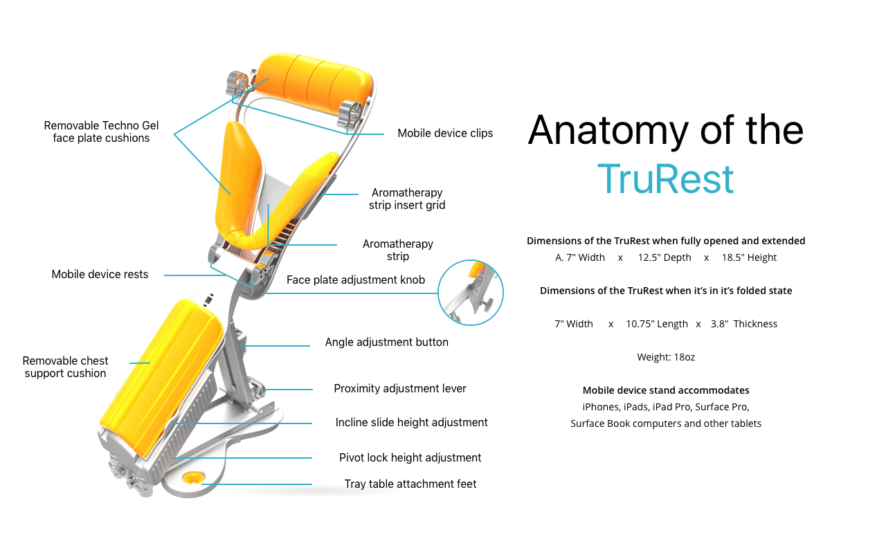 The finest, most innovative materials have been explored for the TruRest including non-toxic hypo-allergenic TechnoGel for our cushions, and pure organic essential oils for our aromatherapy strips.